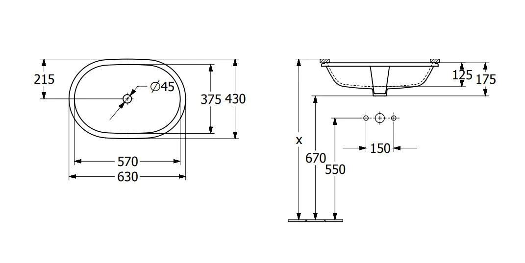 Ovale wastafel voor inbouw onder plaat