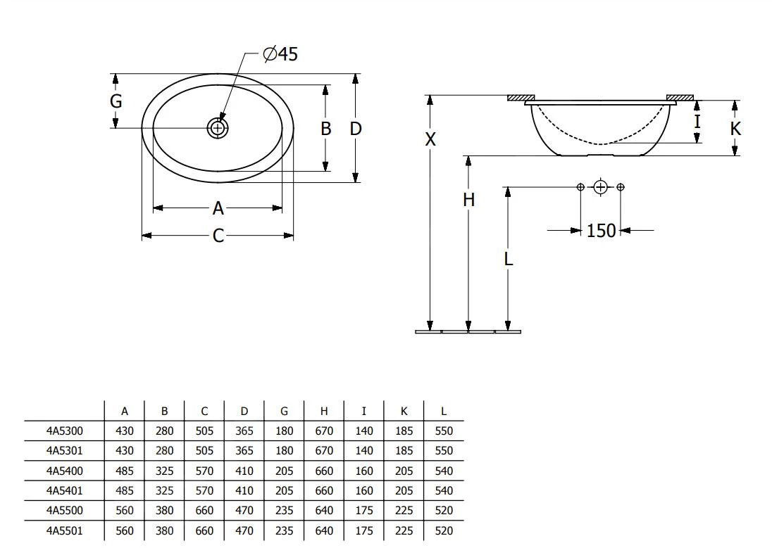 - uitsparing in de wastafelplaat moet worden gemaakt volgens de originele wastafel