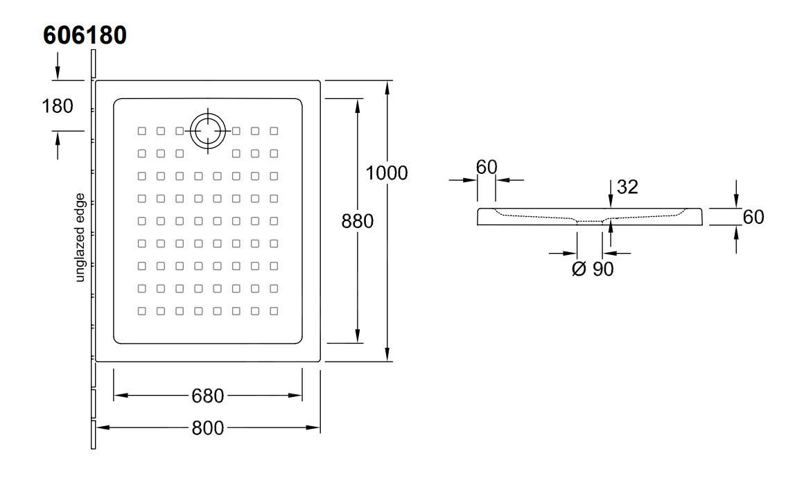 Rechthoekige douchebak met kleine antislipelementen