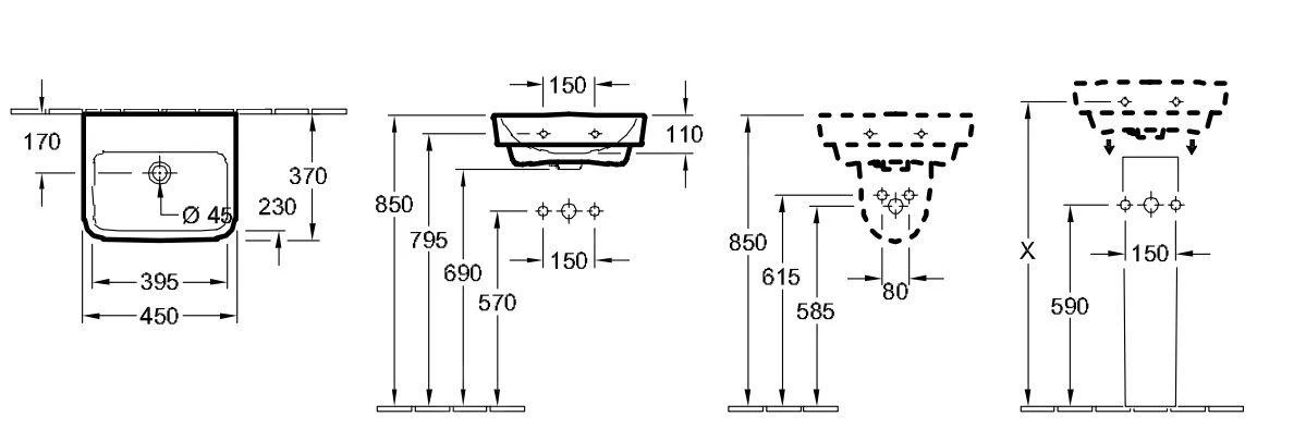 Villeroy & Boch Architectura – Onderbouw Wastafel, 570×370 Mm, Met Overloop, Alpine Wit 5A776001