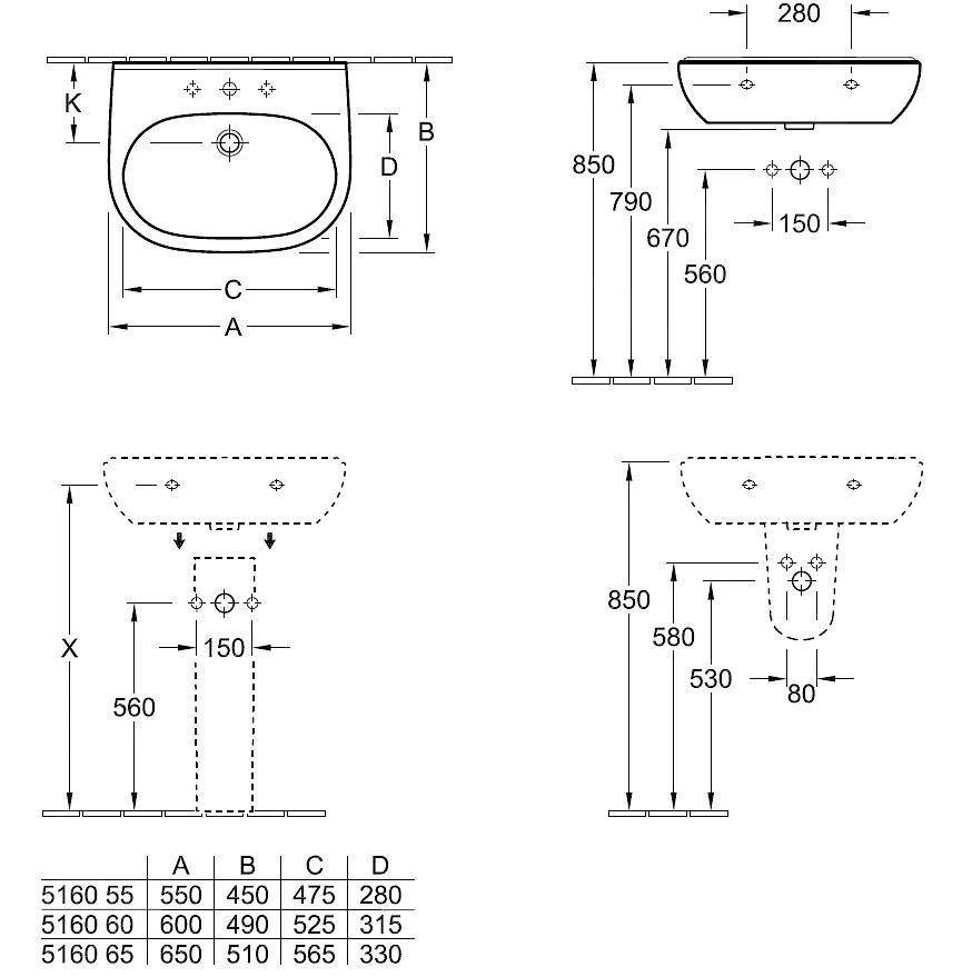 Villeroy & Boch O.novo – Wastafel 600×490 Mm, Met Overloop, Met Kraangat, Alpine Wit 51606001