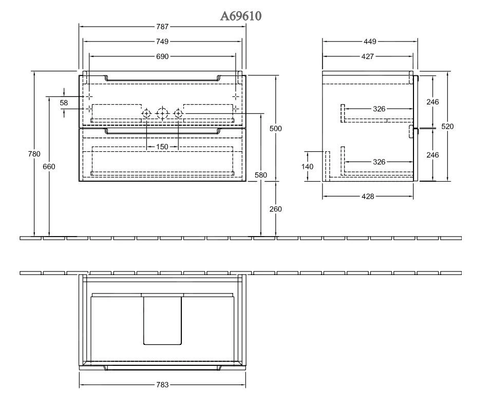 - afmetingen kast: 787 x 520 x 449 mm (bxhxd)